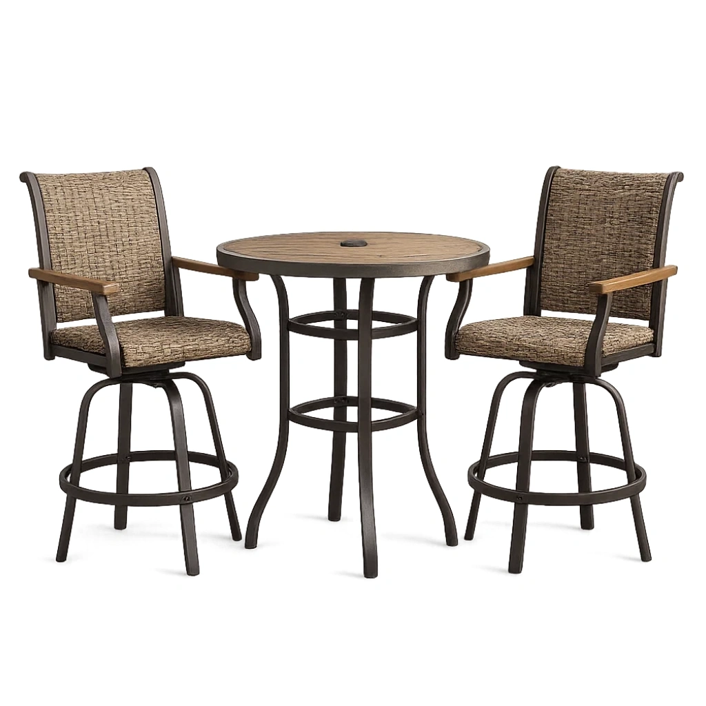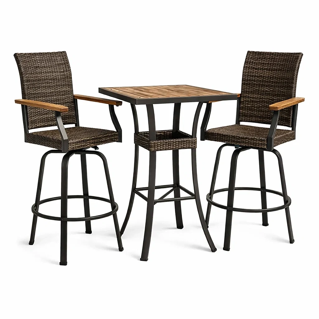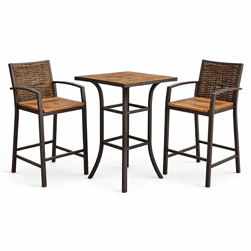 Ensemble de bar en métal et bois marron avec table et chaises hautes