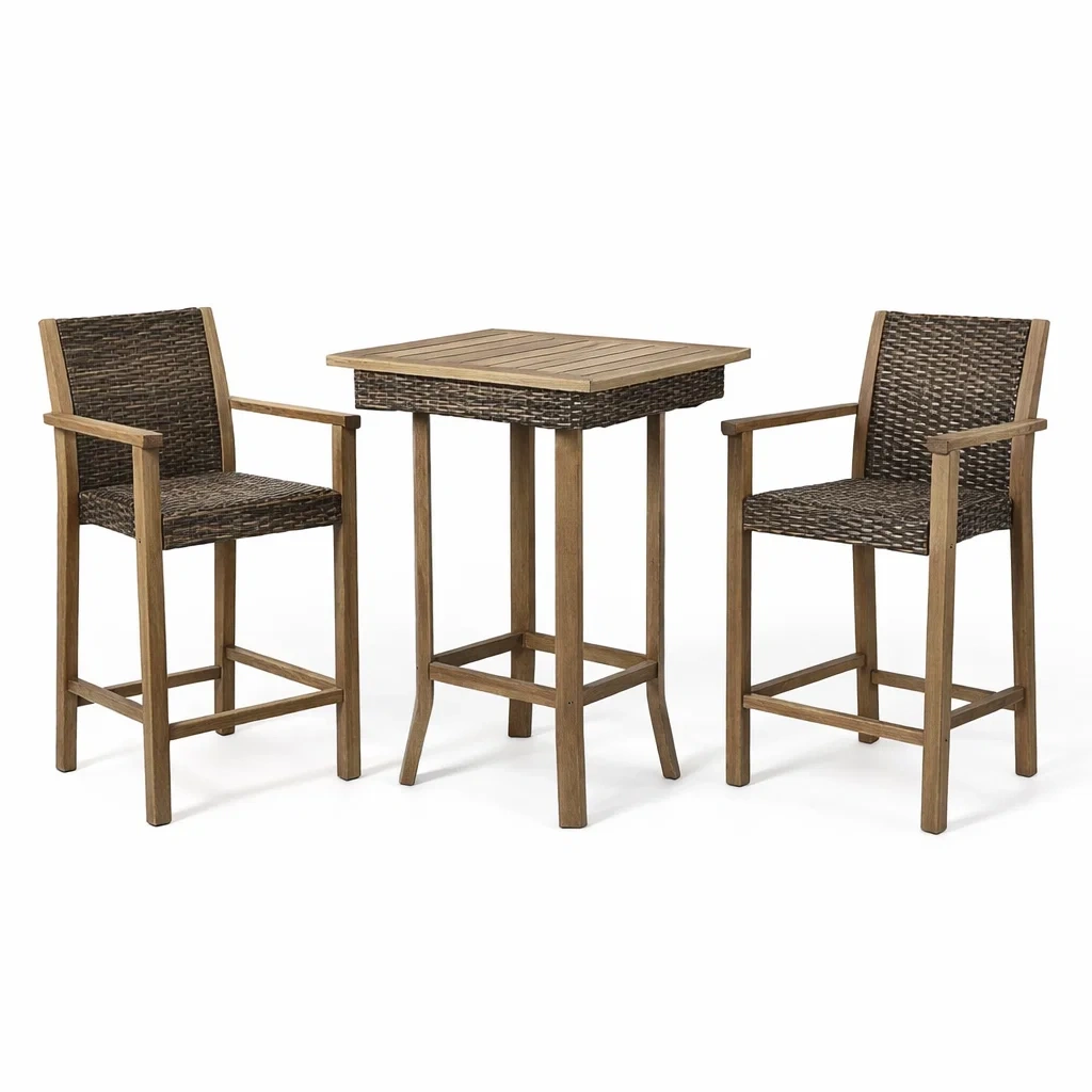 Ensemble de bar extérieur en acacia et rotin avec table et 2 chaises