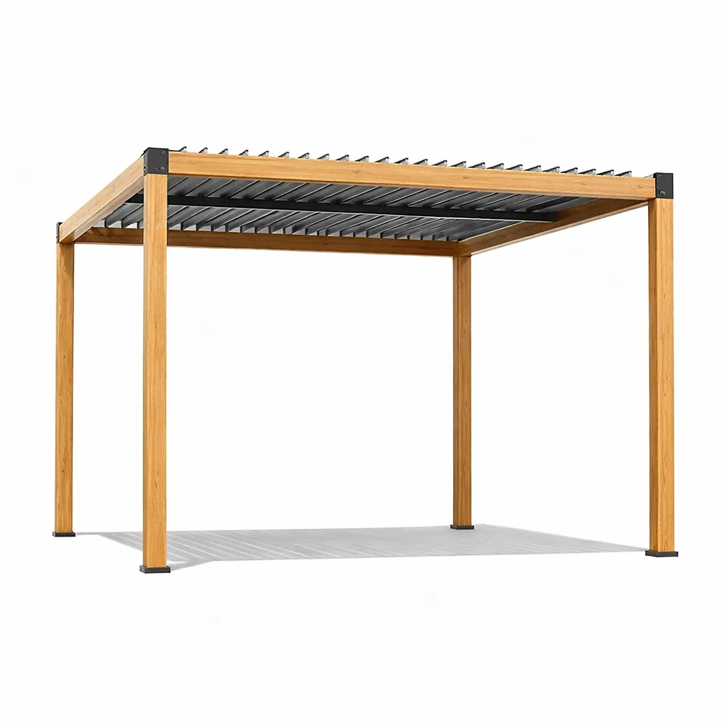 Pergola en aluminium effet bois avec toit ajustable 300x400 cm