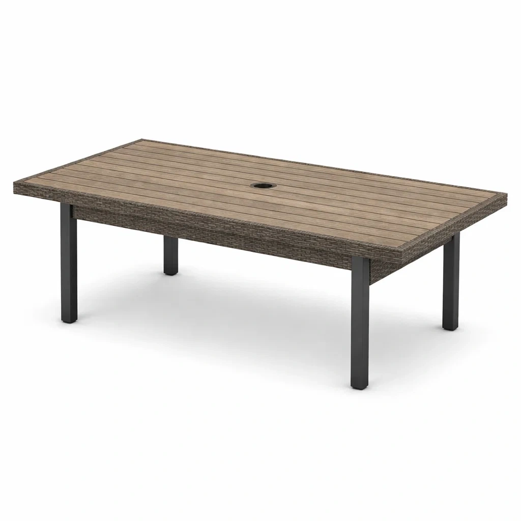 Cette table extérieure est conçue avec un plateau en bois composite et des pieds en aluminium. Ses dimensions sont de 200 cm de longueur, 100 cm de largeur et 74 cm de hauteur. La couleur Marron/Noir apporte une touche élégante. La table peut supporter un poids total de 80 kg. Pour l'entretien, nettoyez avec un chiffon humide et évitez les produits chimiques agressifs.